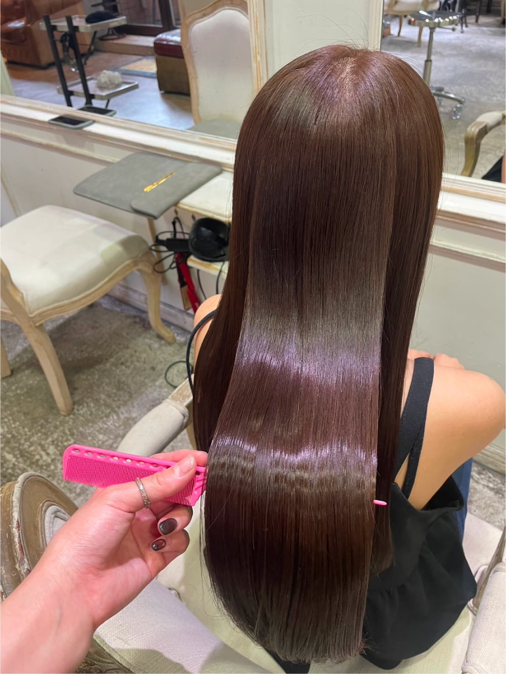 憧れている美容師さんが、「お客様一人ひとりを長期間担当できれば、お客様と一緒になって自分も成長していけるよ」と教えてくださり、美容師はとても素敵な仕事だと感じました。