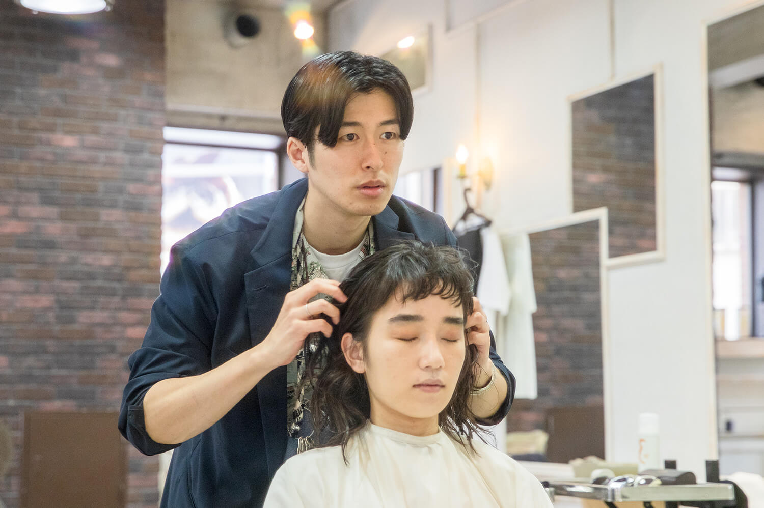 スタイリング剤をあえてまんべんなく付けないことで、空気を含んだ適度な束感に仕上げる。