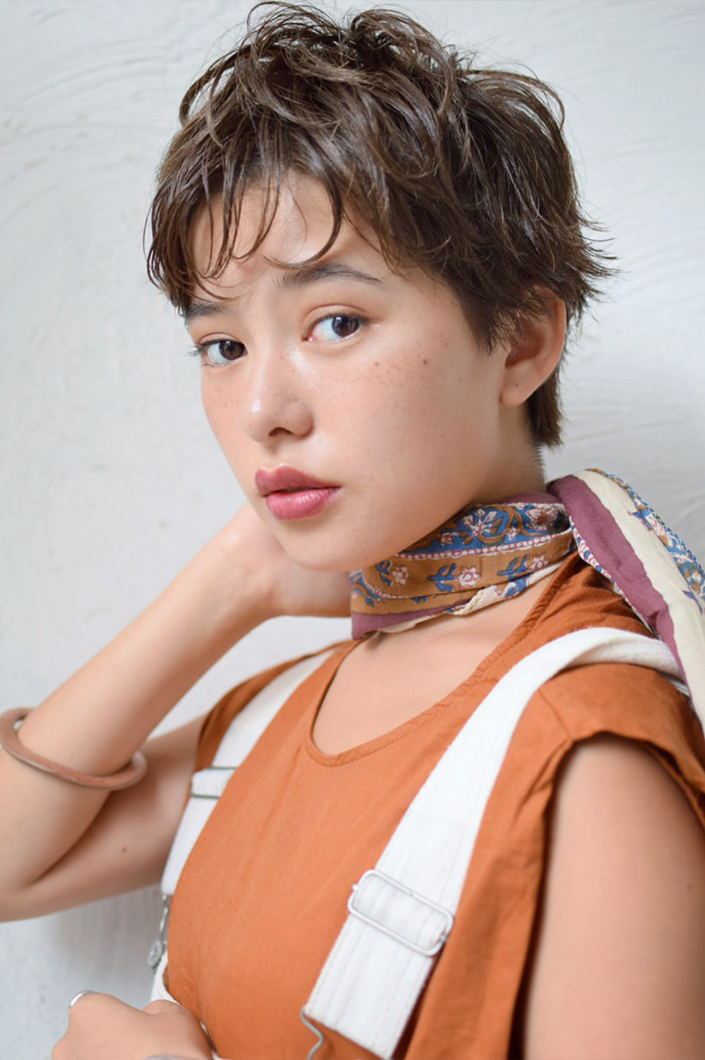 えり足をコンパクトに引き締めたベリーショートは、ボーイッシュになりすぎないようトップにボリュームを持たせ、ふんわり動きが出るようにカット。