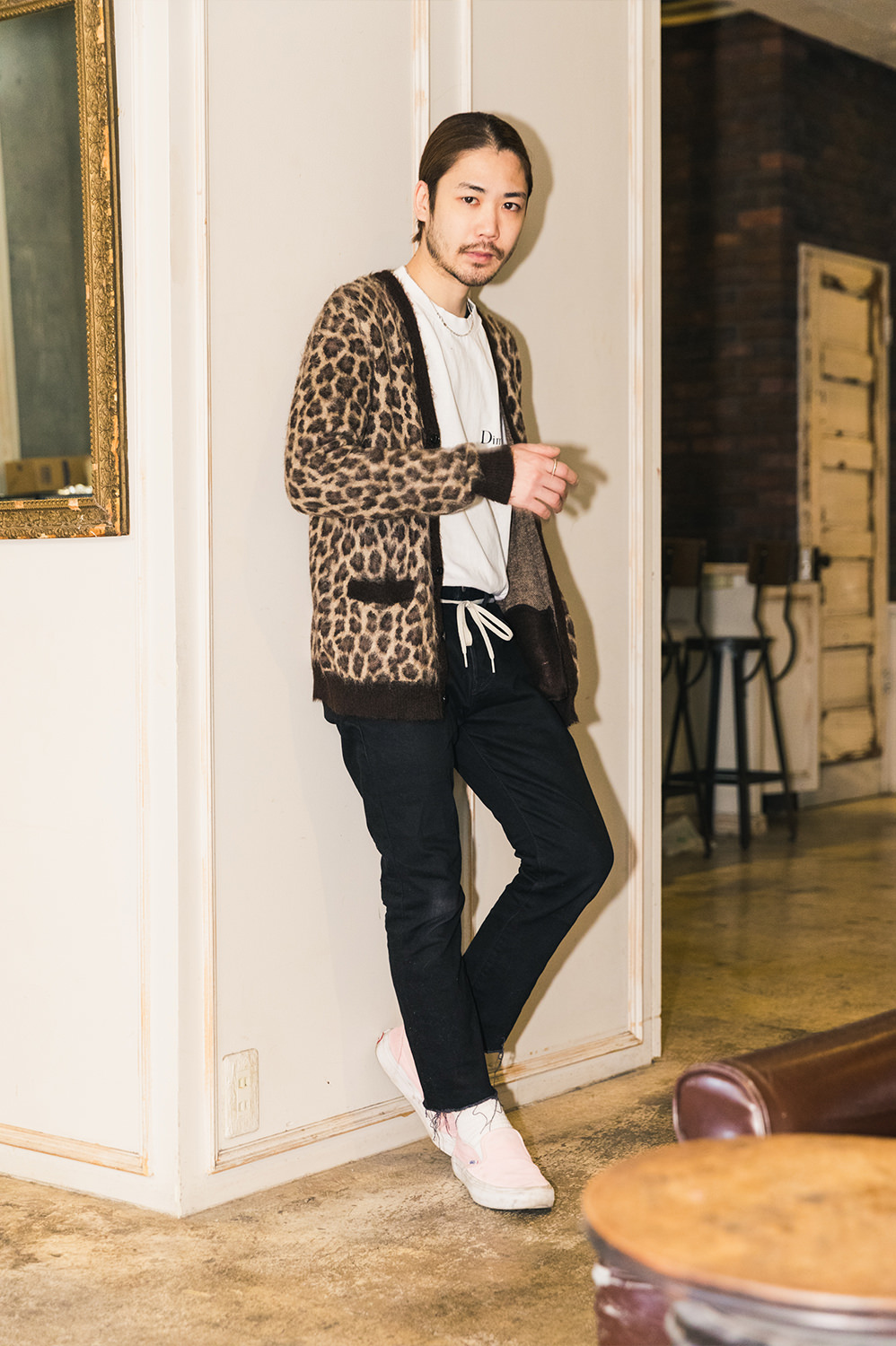 Cardigan : WACKO MARIA / Tops : Dime / Pants : リーバイス / Shoes : VANS