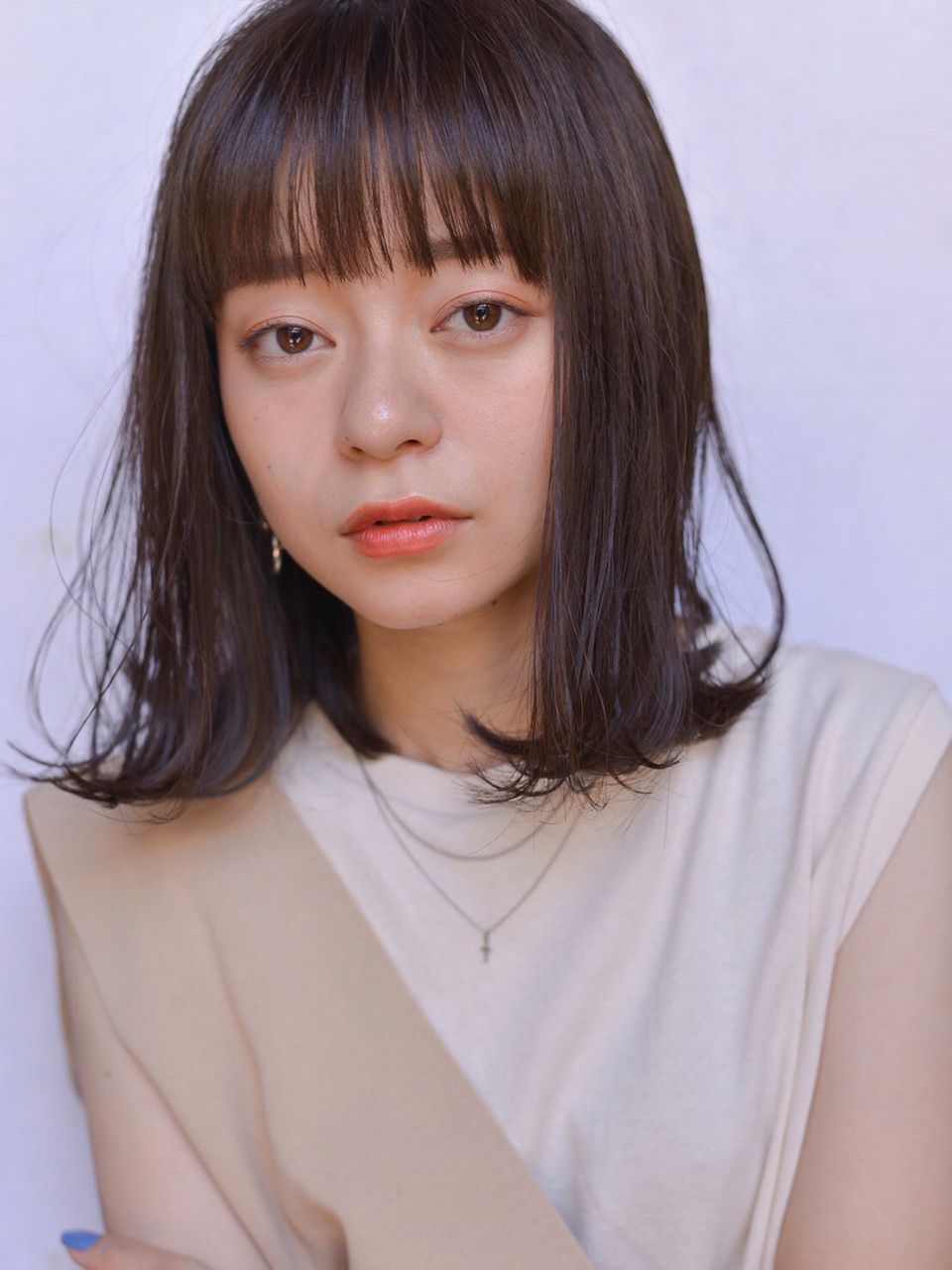 ロングヘアからのイメージチェンジでも挑戦しやすい、ミディアムスタイルです。