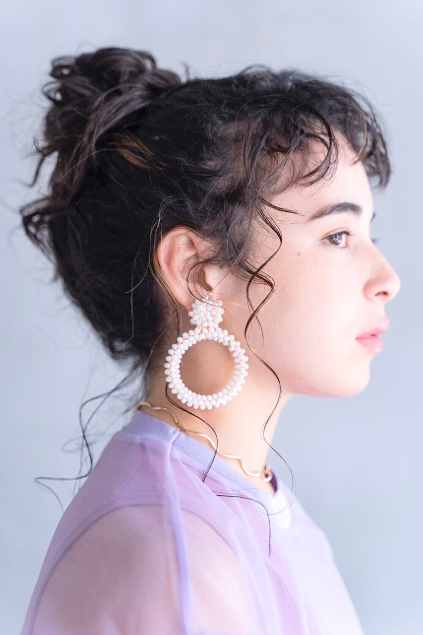顔周りはリバースで細かく巻き、前髪は癖毛を生かしつつ表面だけミックスで巻いて全体をヘアオイルで馴染ませ質感ウエッティにし、こなれ感たっぷりだしました!