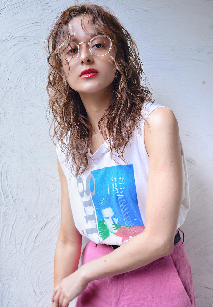 トップからの強めのウェーブが可愛い、洗い晒しのラフなカジュアルスタイルが今季のおすすめ。ラフにドライして、毛先に重めのオイルをONすることで、ボリューム感を調整しています。