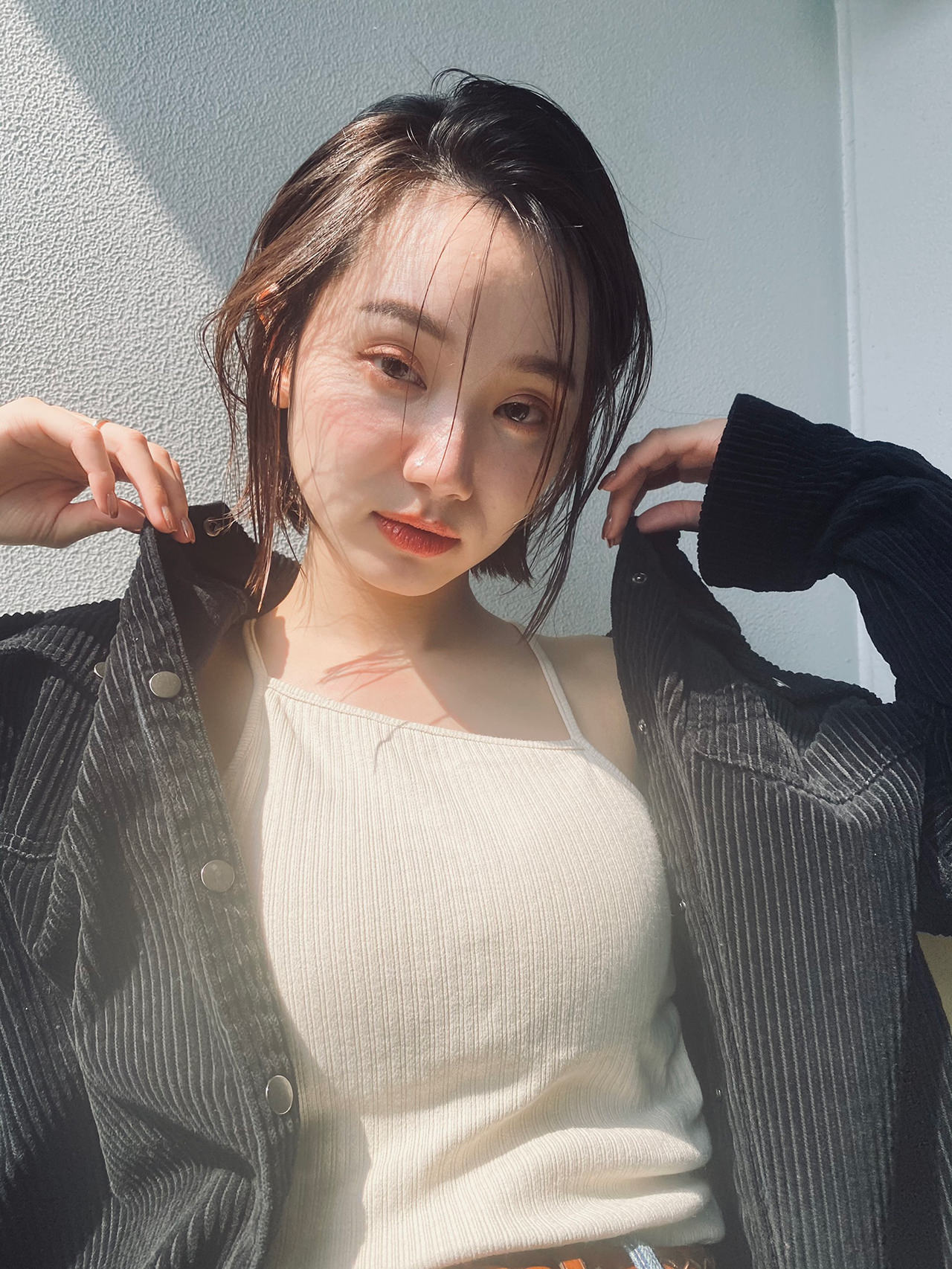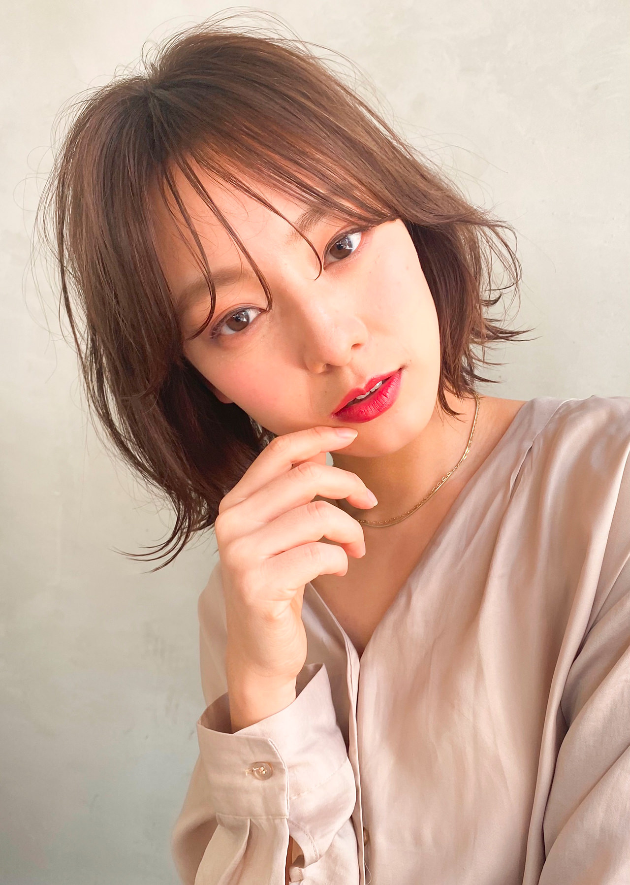 あごラインの軽めのボブをベースに、2パターンをスタイリング。