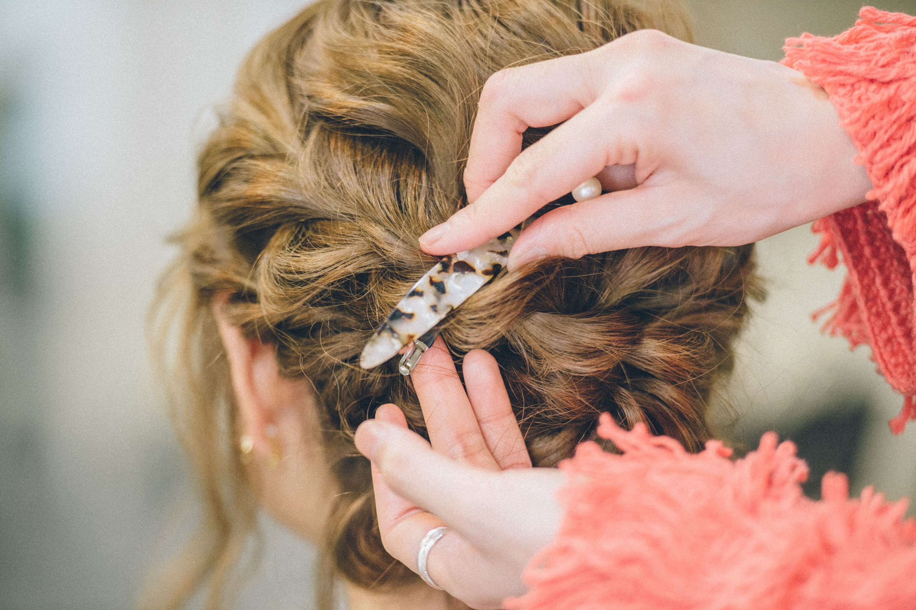 今回はべっ甲バレッタとパールのついたゴールドのヘアアクセサリーを選び、普段使いしやすいカジュアル感を演出。