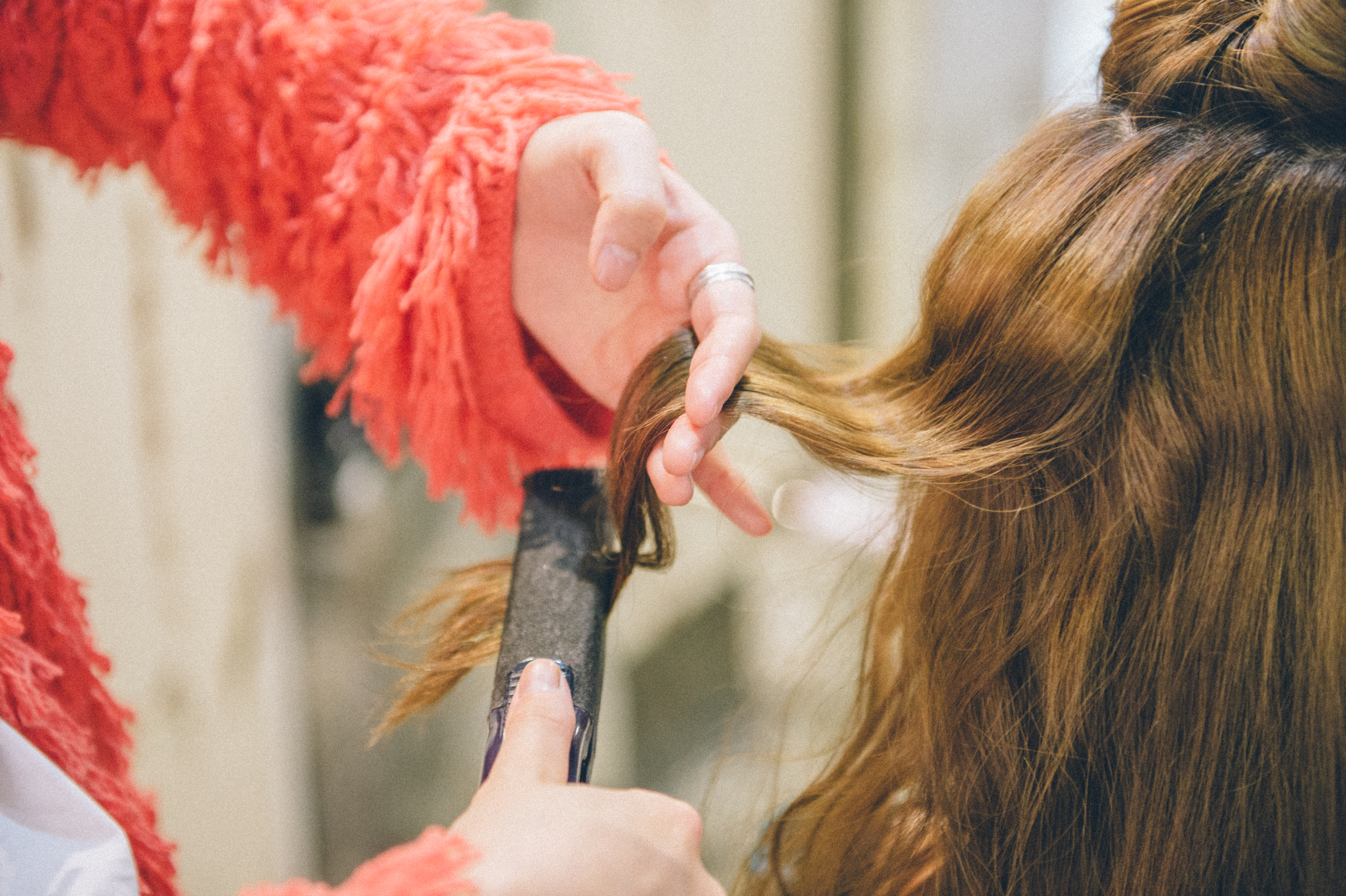 アレンジの下地としてストレートアイロンで大きめの波ウェーブを作る。