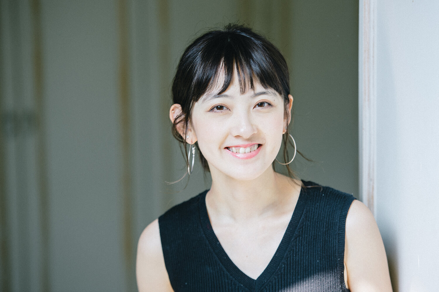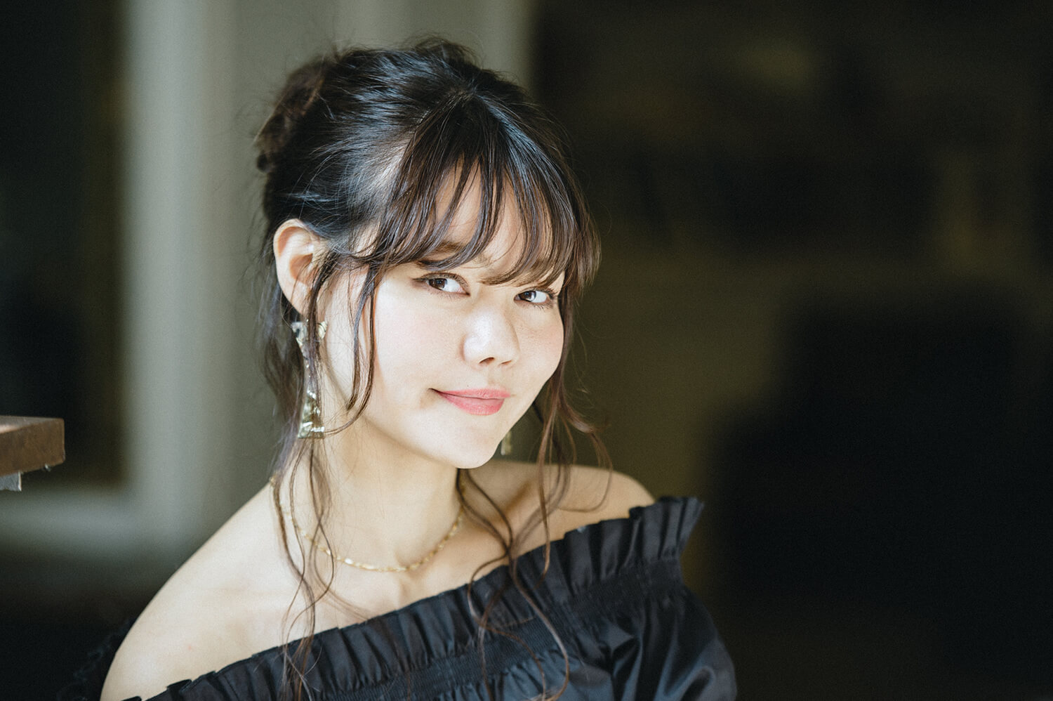 クールな印象を持ちながら、柔らかな表情でガーリーなスタイルもこなす。